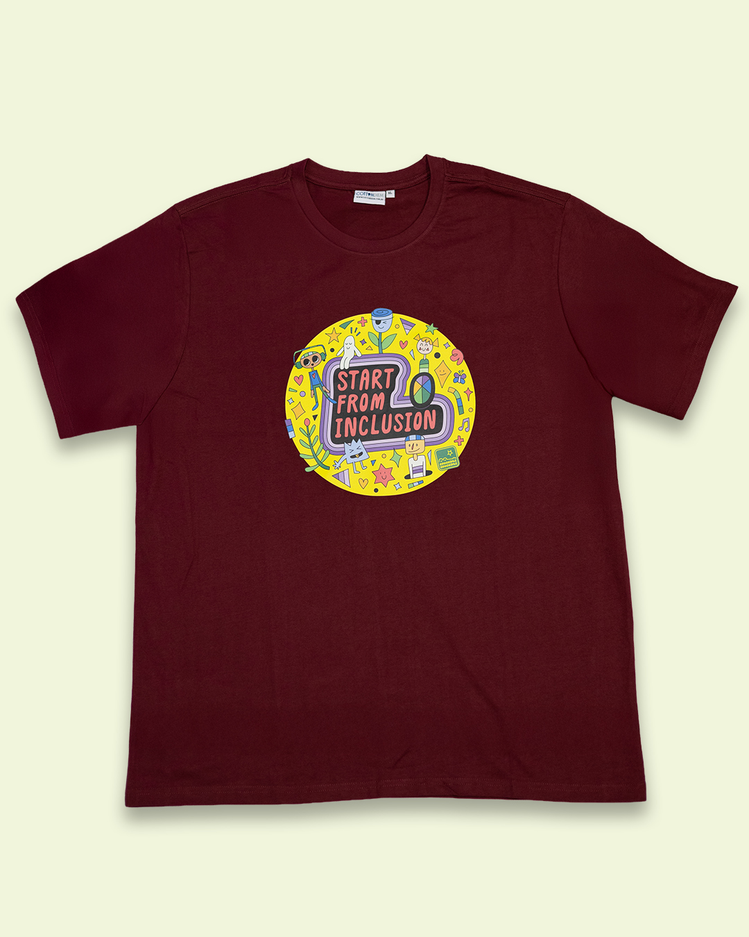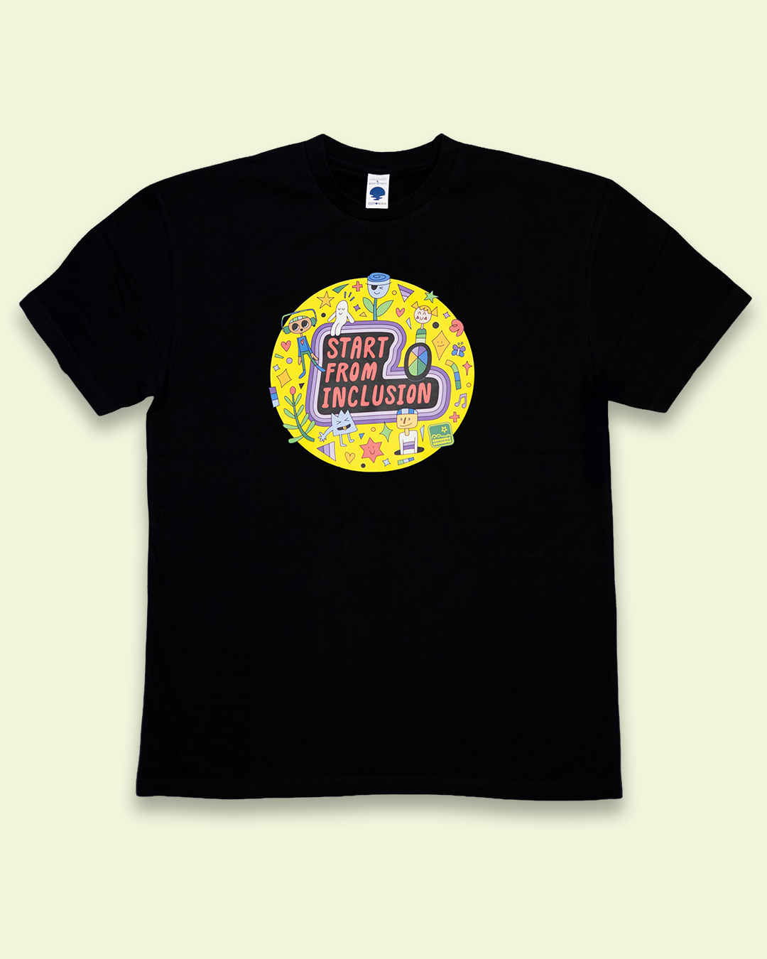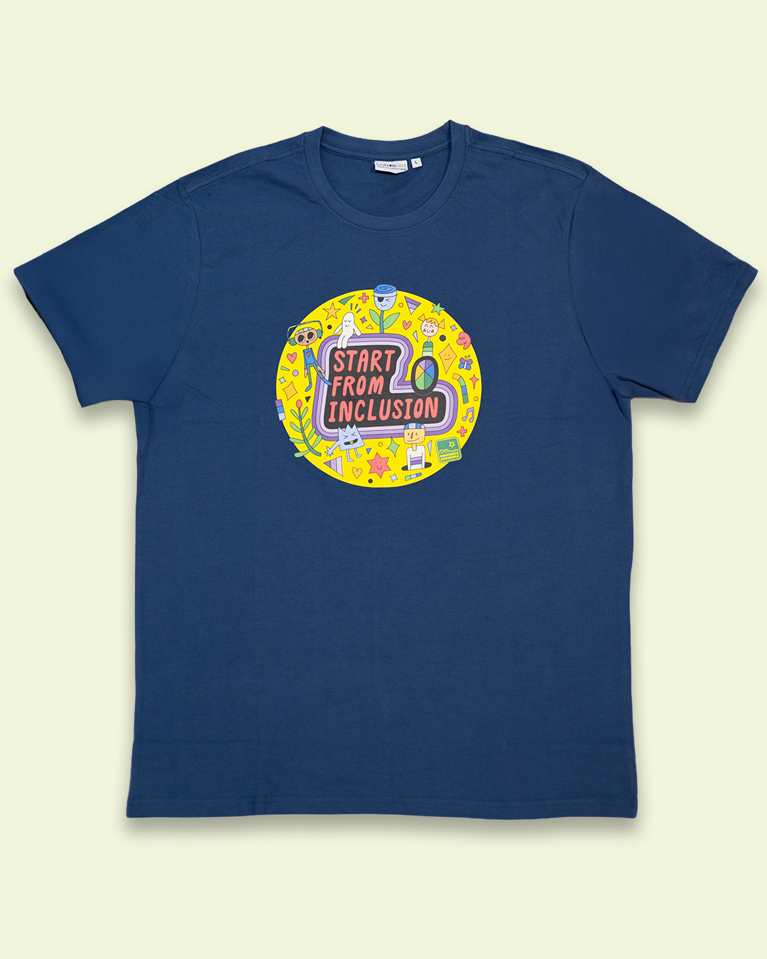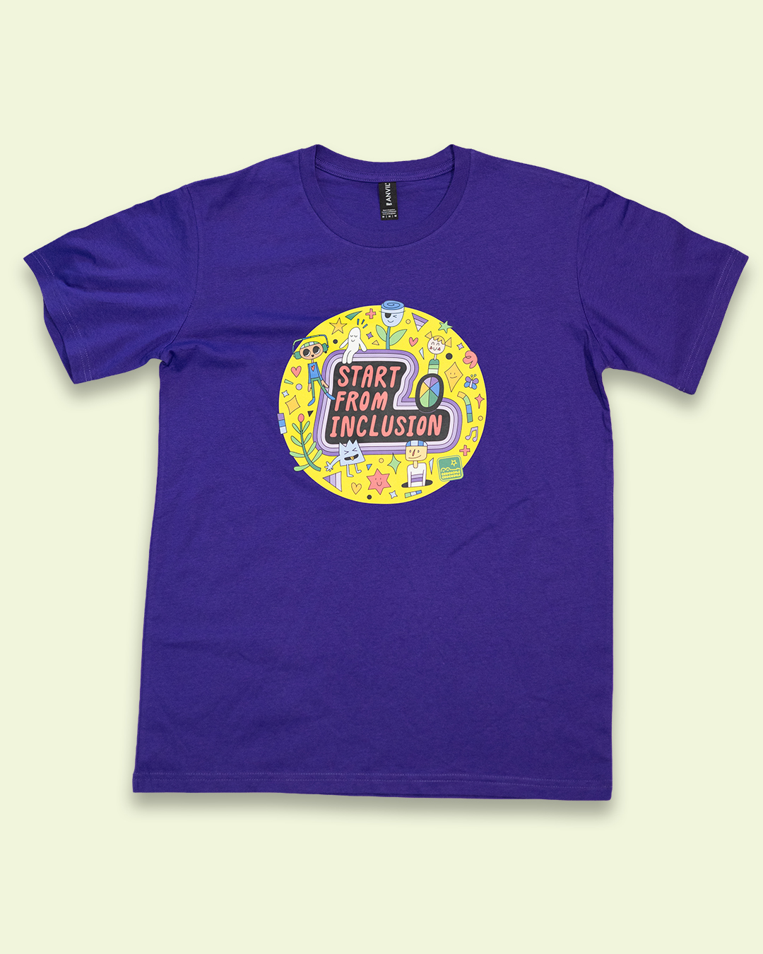Start From Inclusion is a bright and playful shirt that shares a clear message. Inclusion should be the starting point. The design is full of cheerful characters that celebrate every child and every body. It is great for designers, teachers, parents, therapists, and anyone else who wants to show they value inclusive thinking from the very beginning.