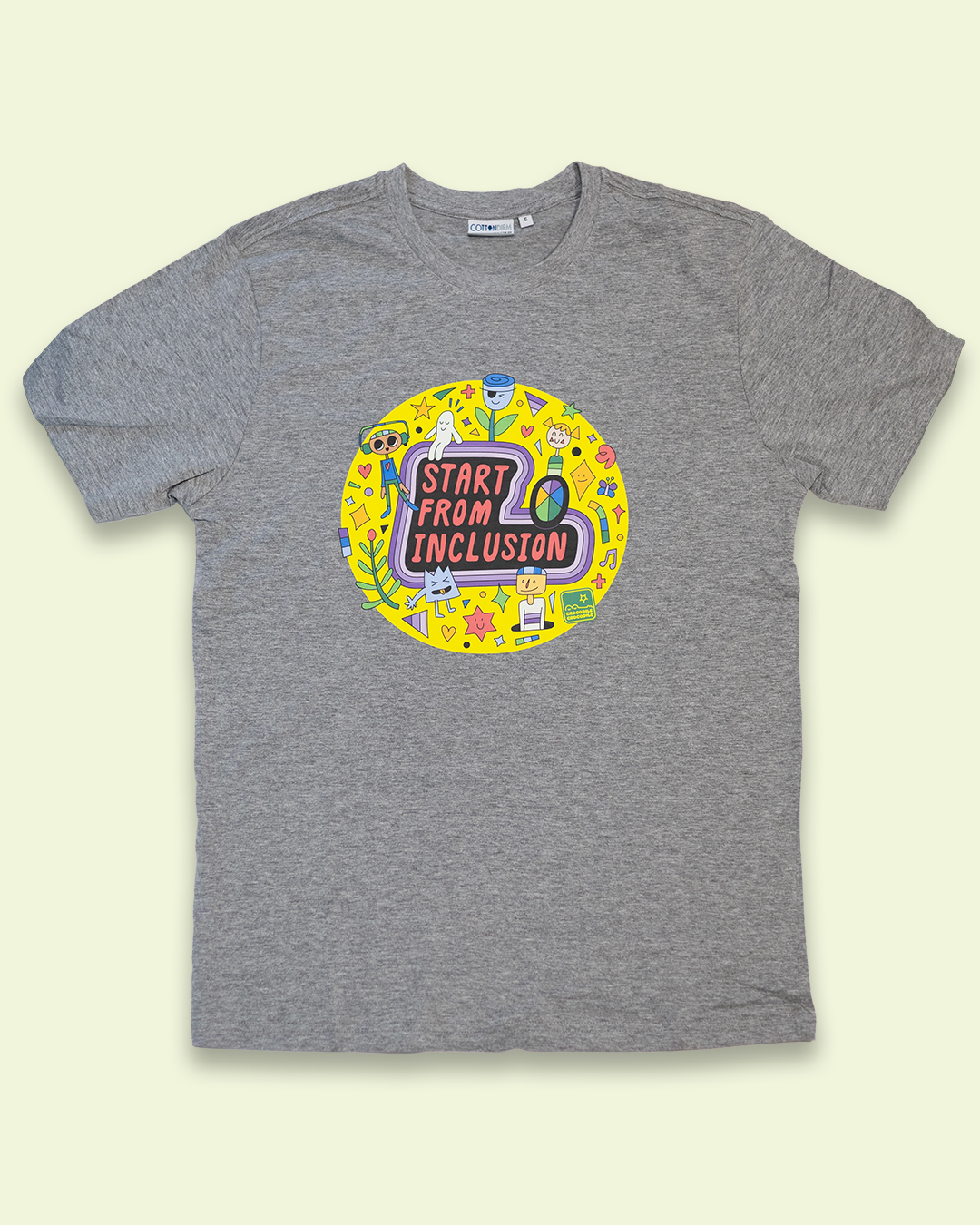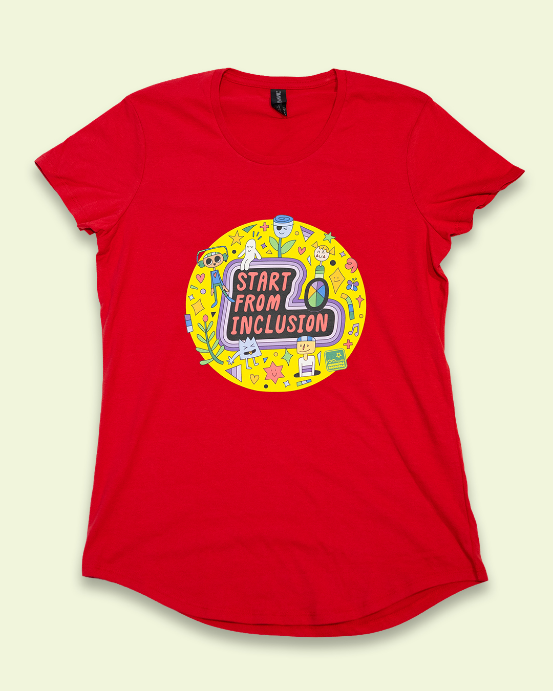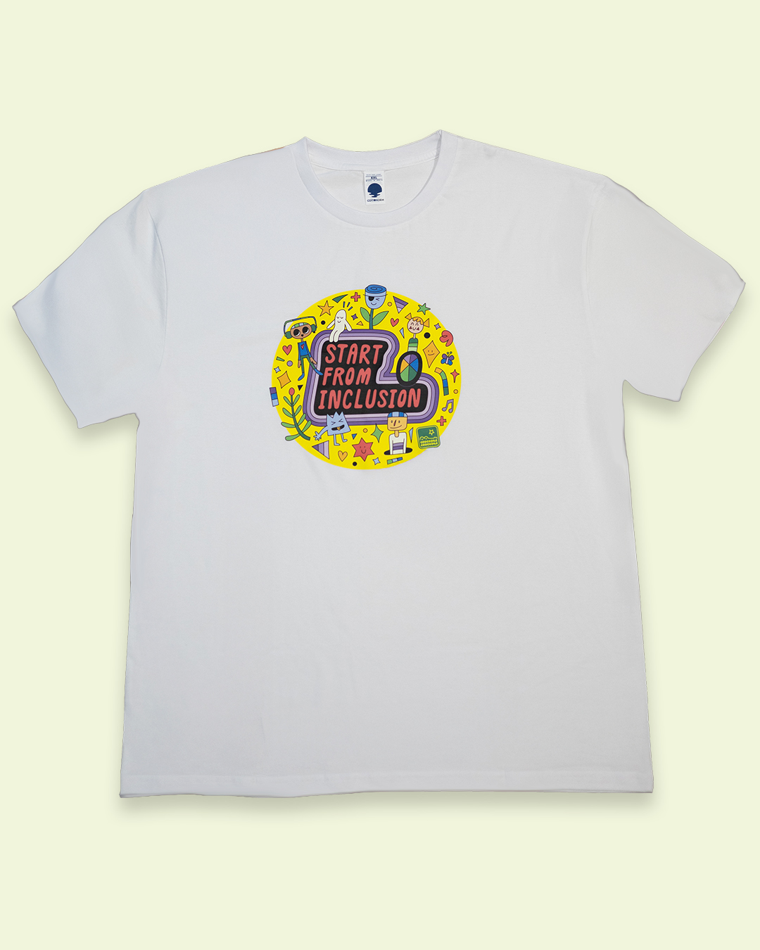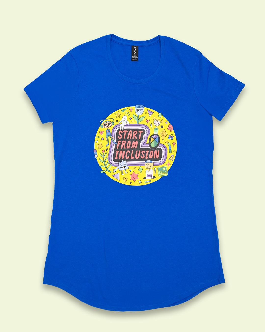 Start From Inclusion is a bright and playful shirt that shares a clear message. Inclusion should be the starting point. The design is full of cheerful characters that celebrate every child and every body. It is great for designers, teachers, parents, therapists, and anyone else who wants to show they value inclusive thinking from the very beginning.